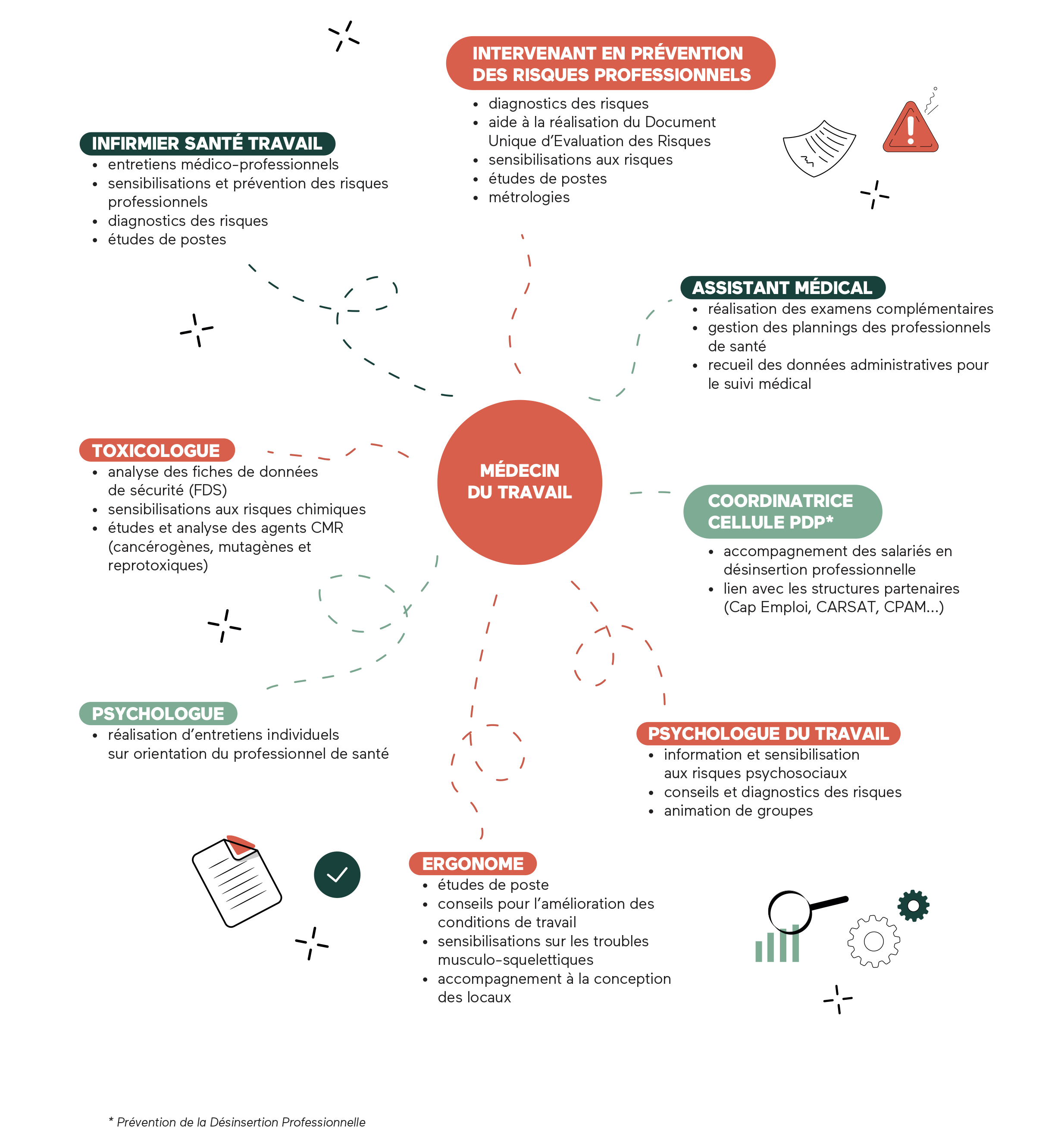 Notre rôle est d’accompagner les entreprises, conseiller les dirigeants et les travailleurs par des actions de prévention en santé au travail, dans le l’objectif de préserver la santé et le bien-être au travail.